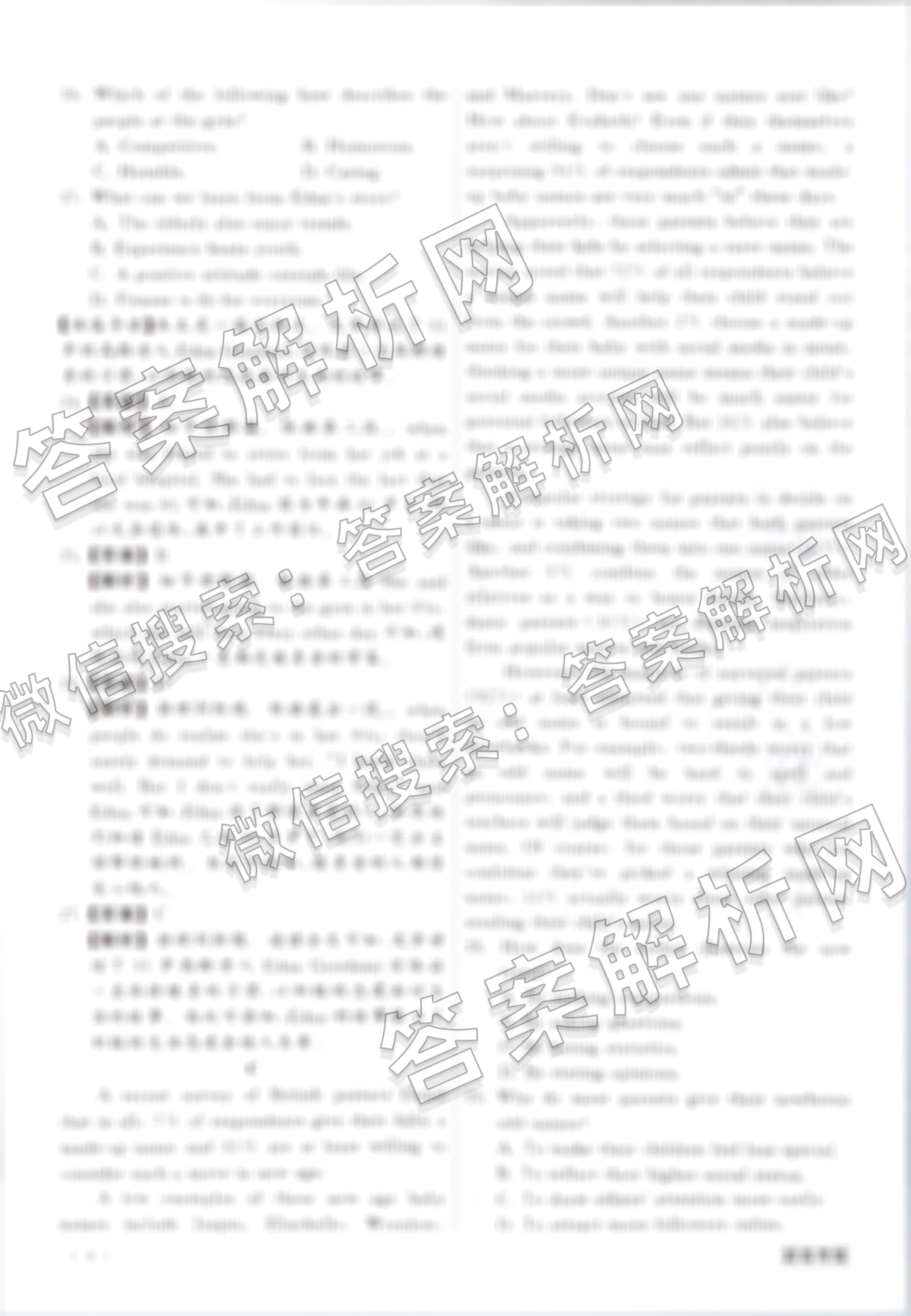 - 高三[衡中同卷]2024届 押题卷 英语(全国卷)(一)1答案