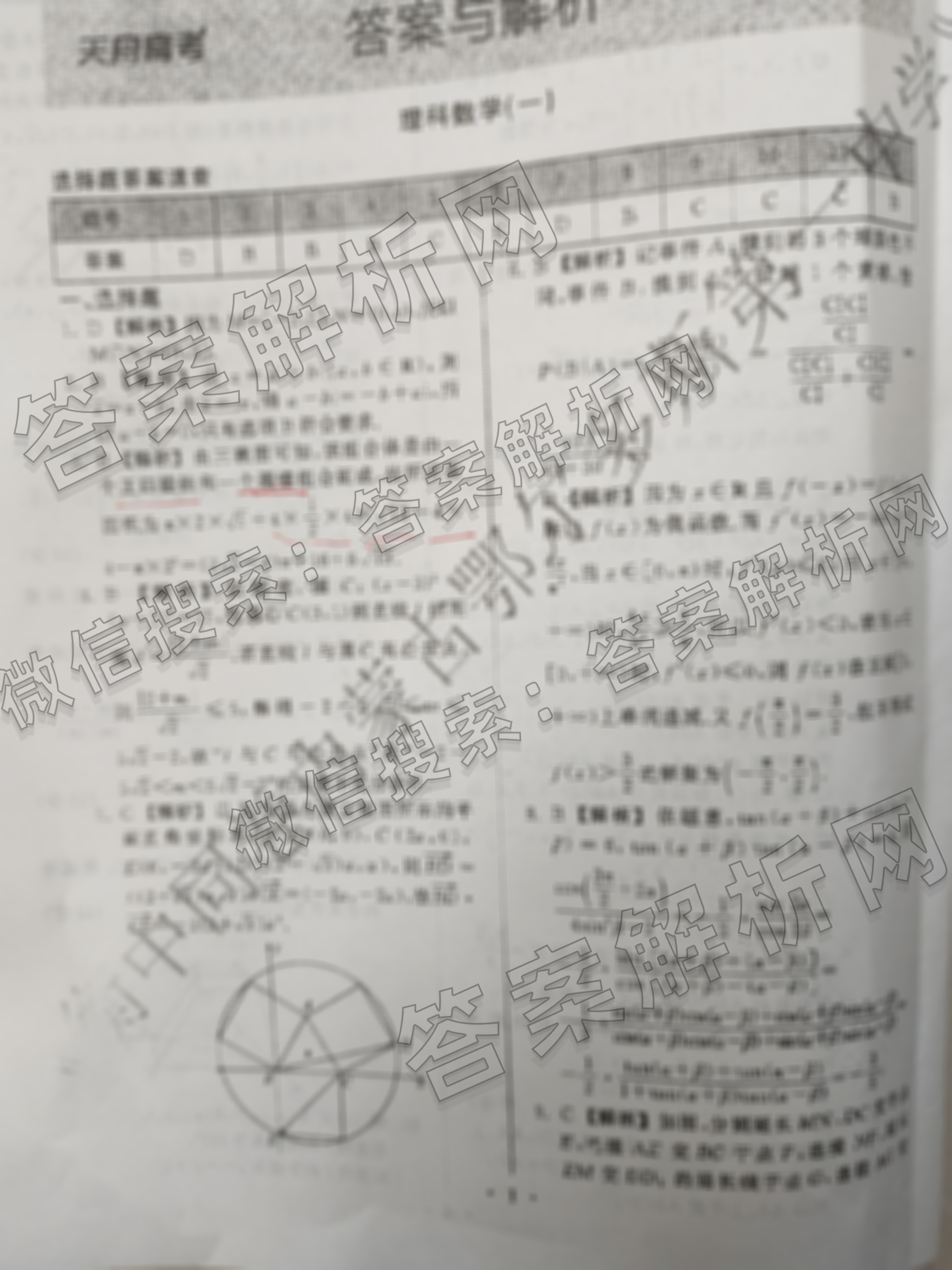 - 2024届(高三)衡中同卷· 押题卷 理数(全国卷)(一)1答案