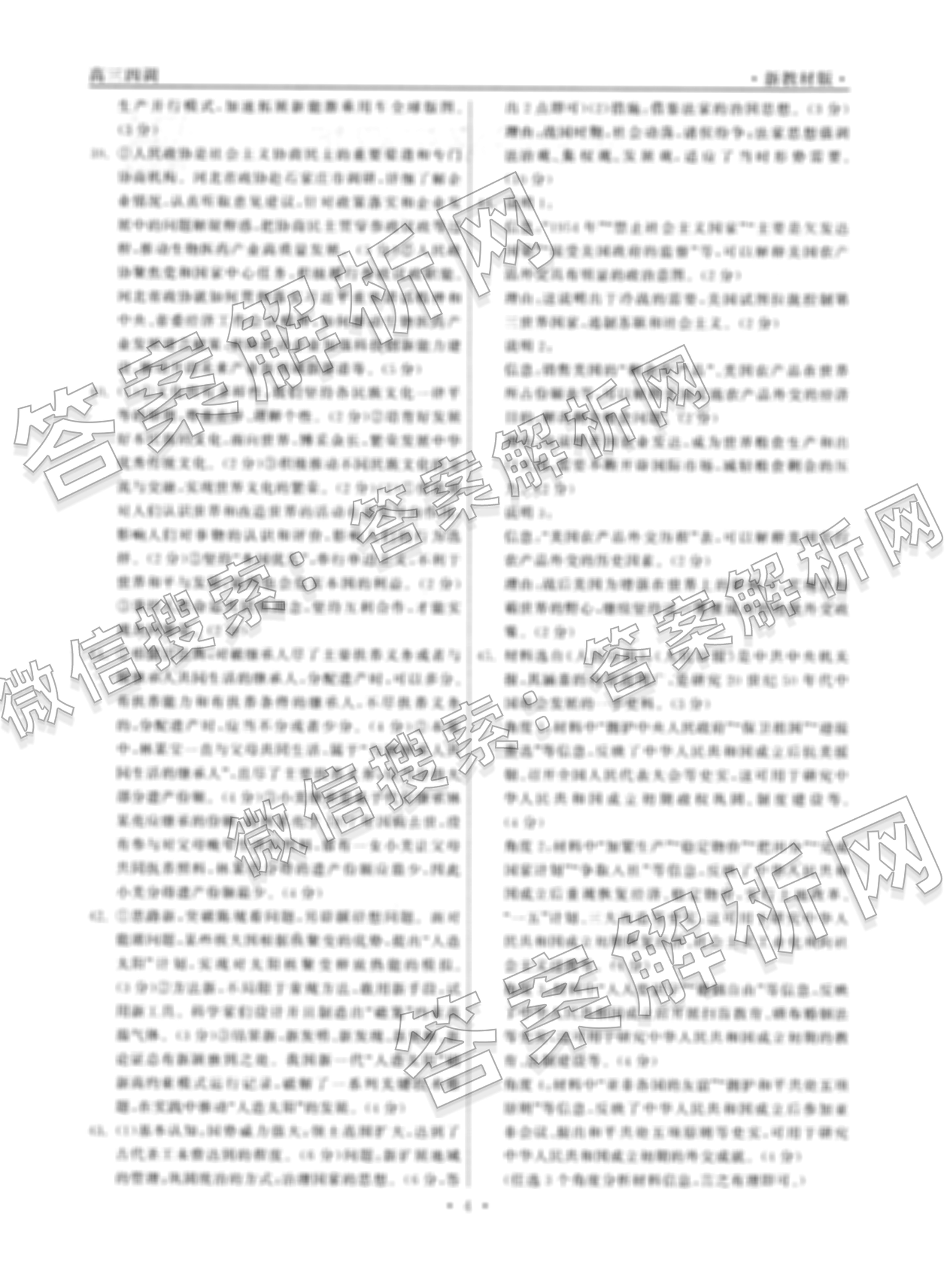 - 2023-2024(衡中同卷)学年度下学期(高三)年级四调考试文综(新教材版)答案