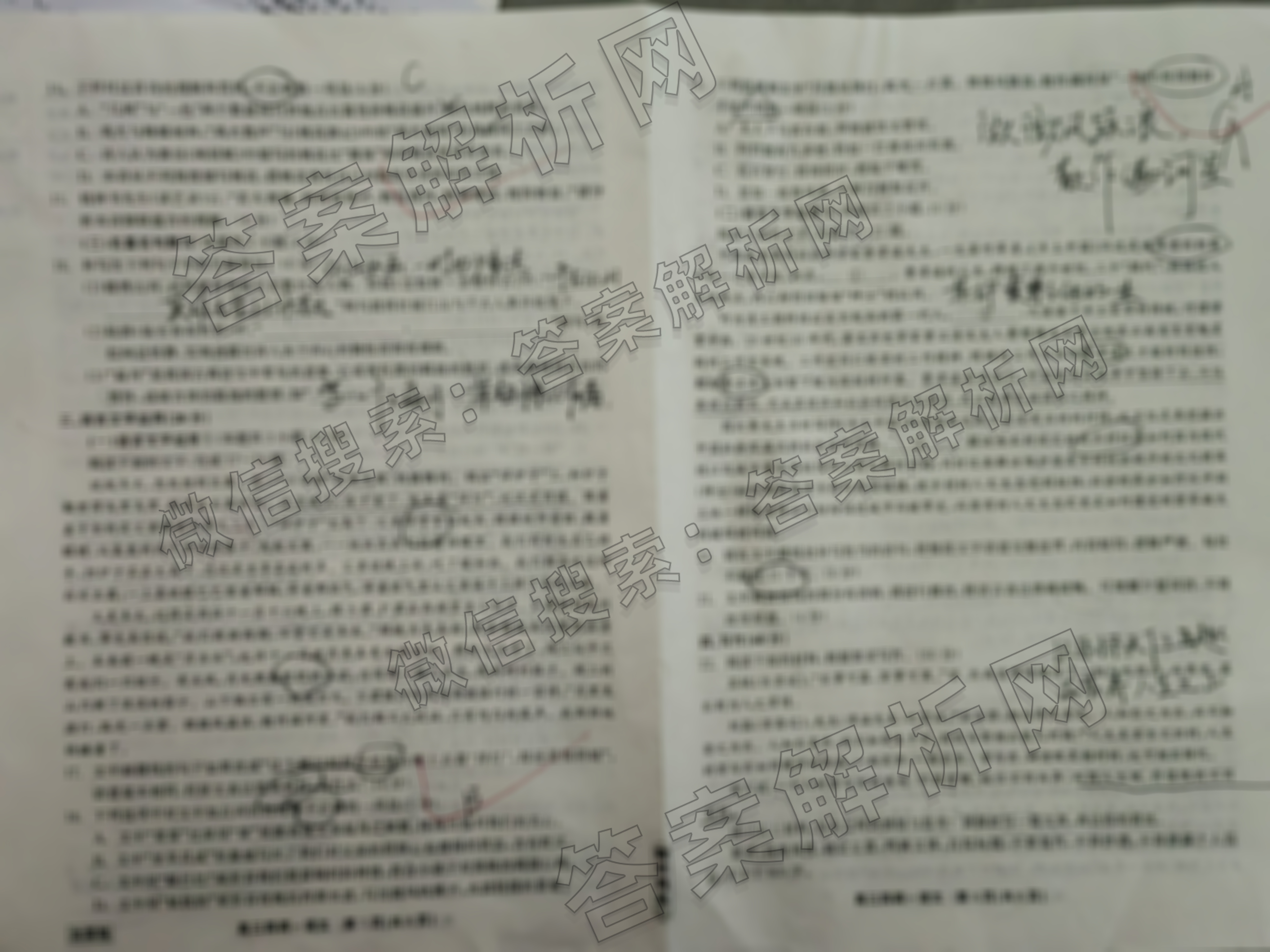 - (衡中同卷)2023~2024学年度下学期(高三)年级四调考试文综(全国卷)答案