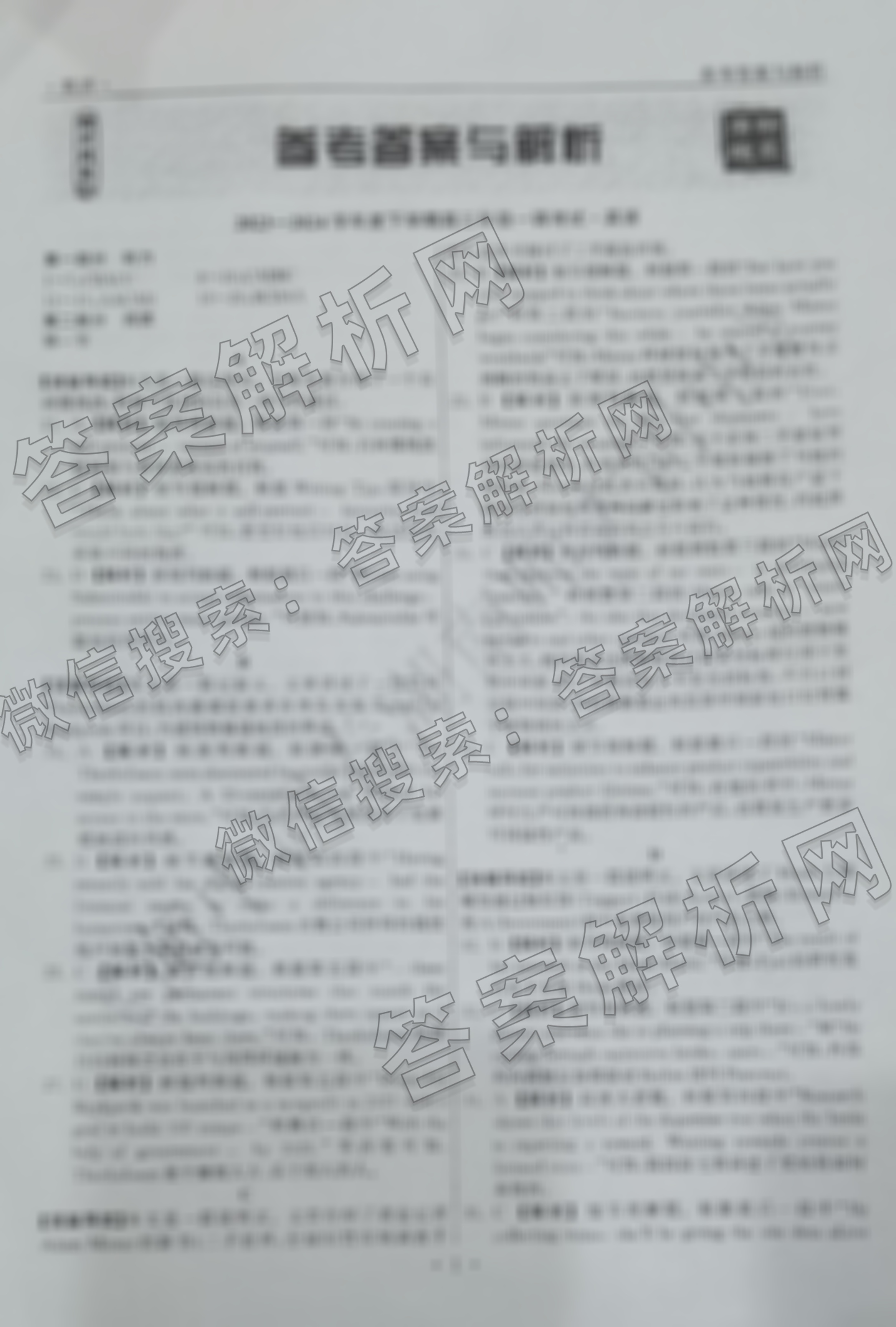 - [高三][衡中同卷]2023~2024学年度下学期年级一调考试 英语(全国卷)答案