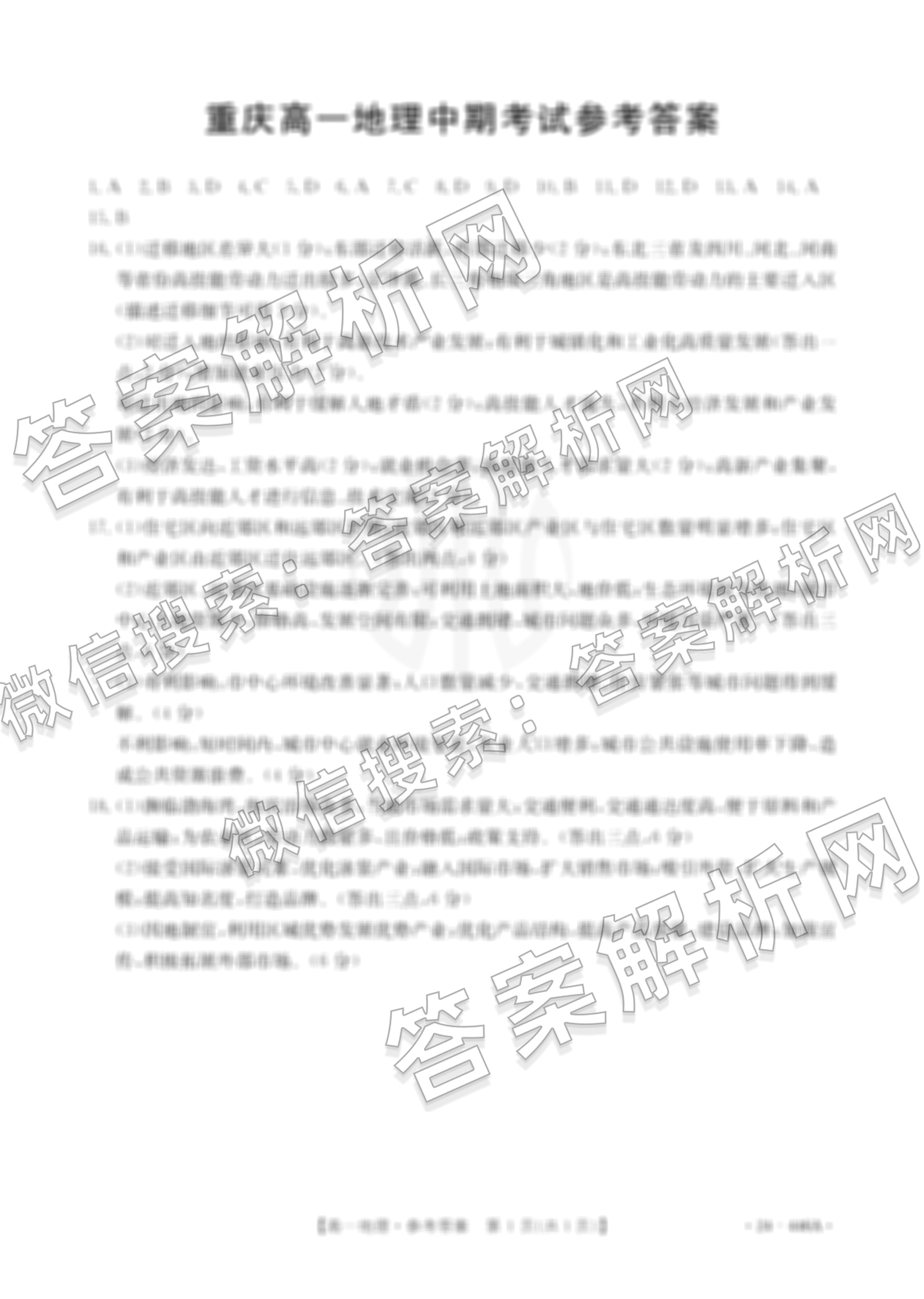 - 2023~2024高一重庆市中期考试(446A)地理答案