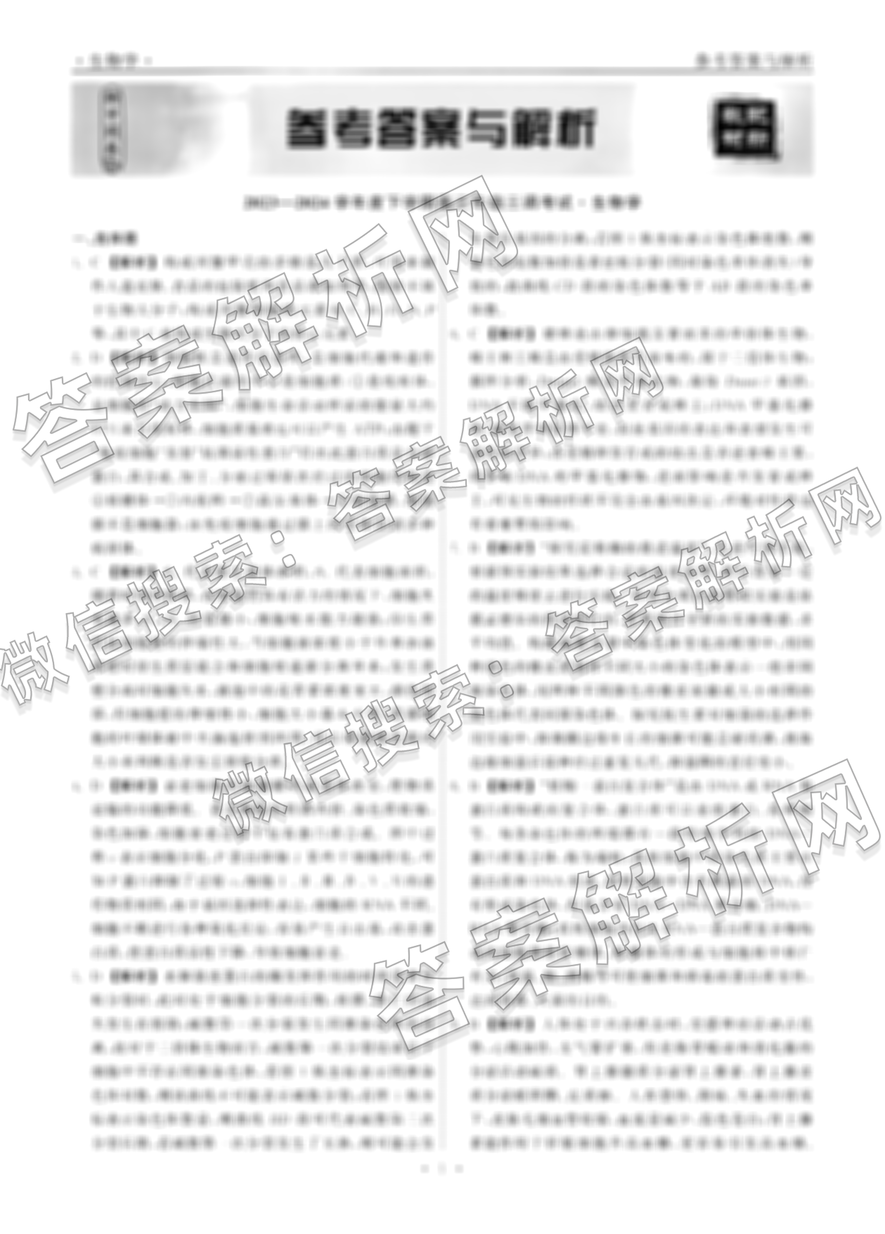 - 2023~2024[衡中同卷]·学年度下学期(高三)年级三调考试生物([衡中同卷])答案