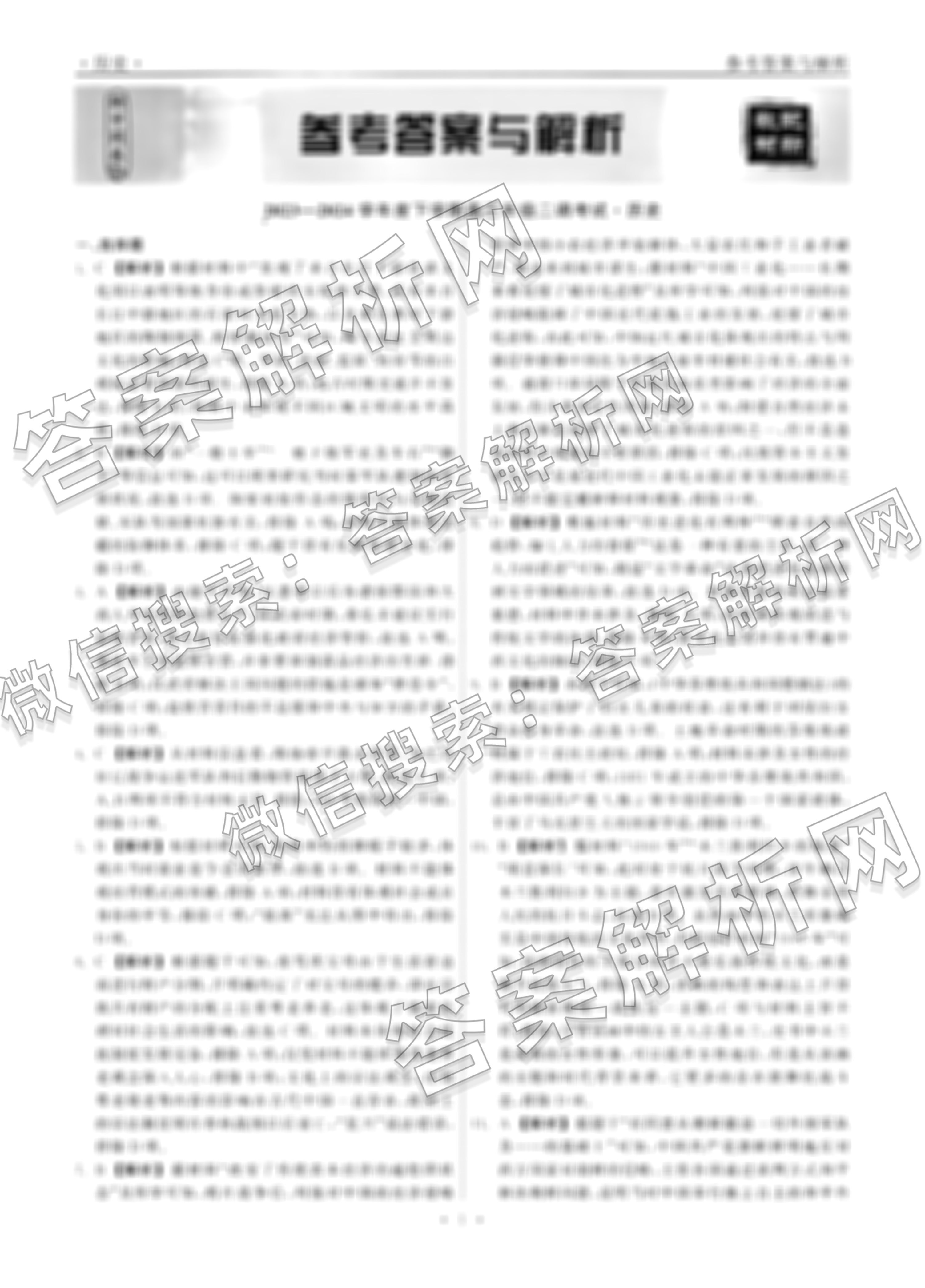 - [衡中同卷]·2023~2024学年度下学期(高三)年级二调考试历史(新教材版)答案