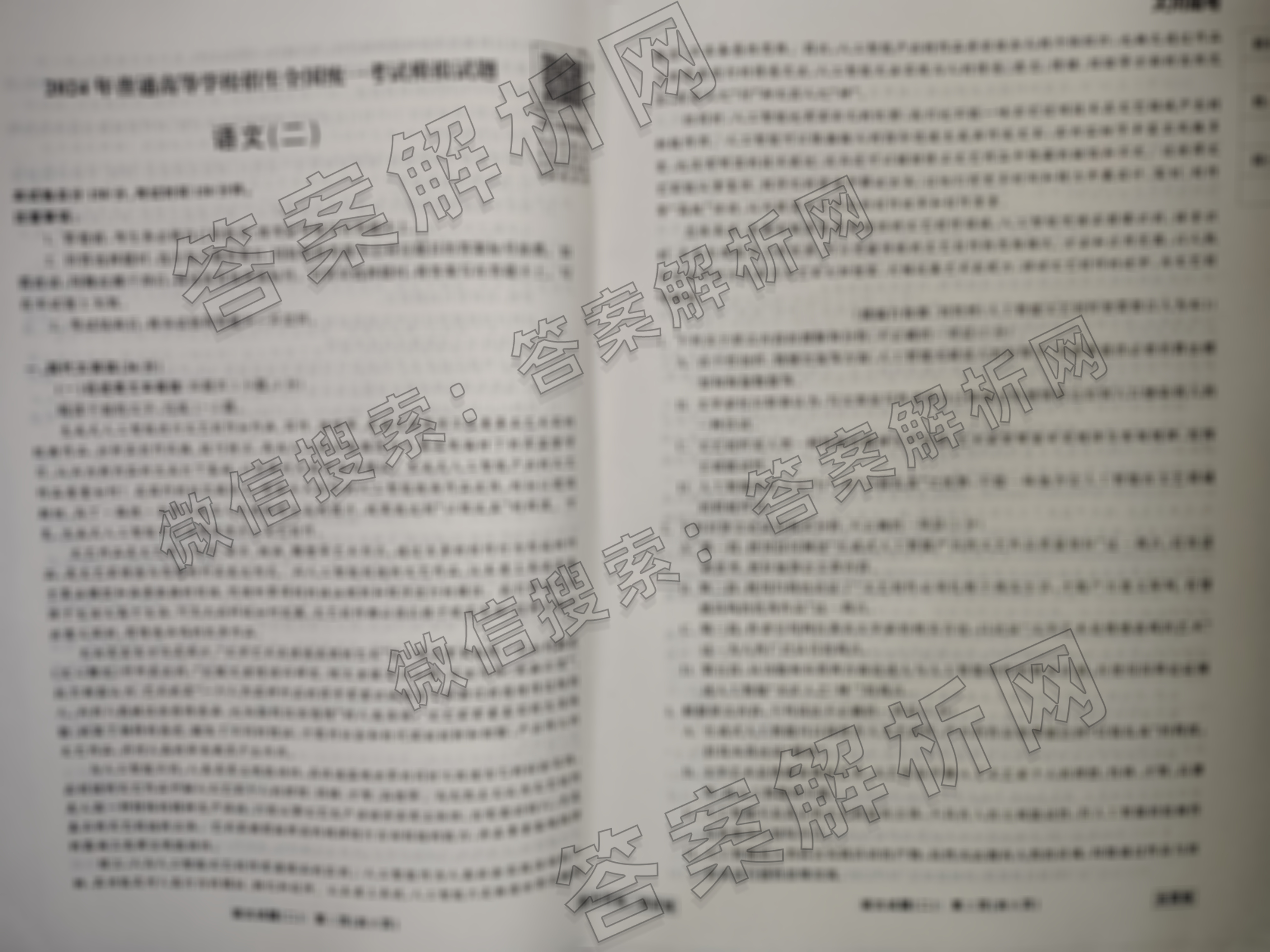 - (高三)衡中同卷·调研卷 2024年普通高等学校招生全国统一考试模拟试题(二)2语文(全国卷)试题