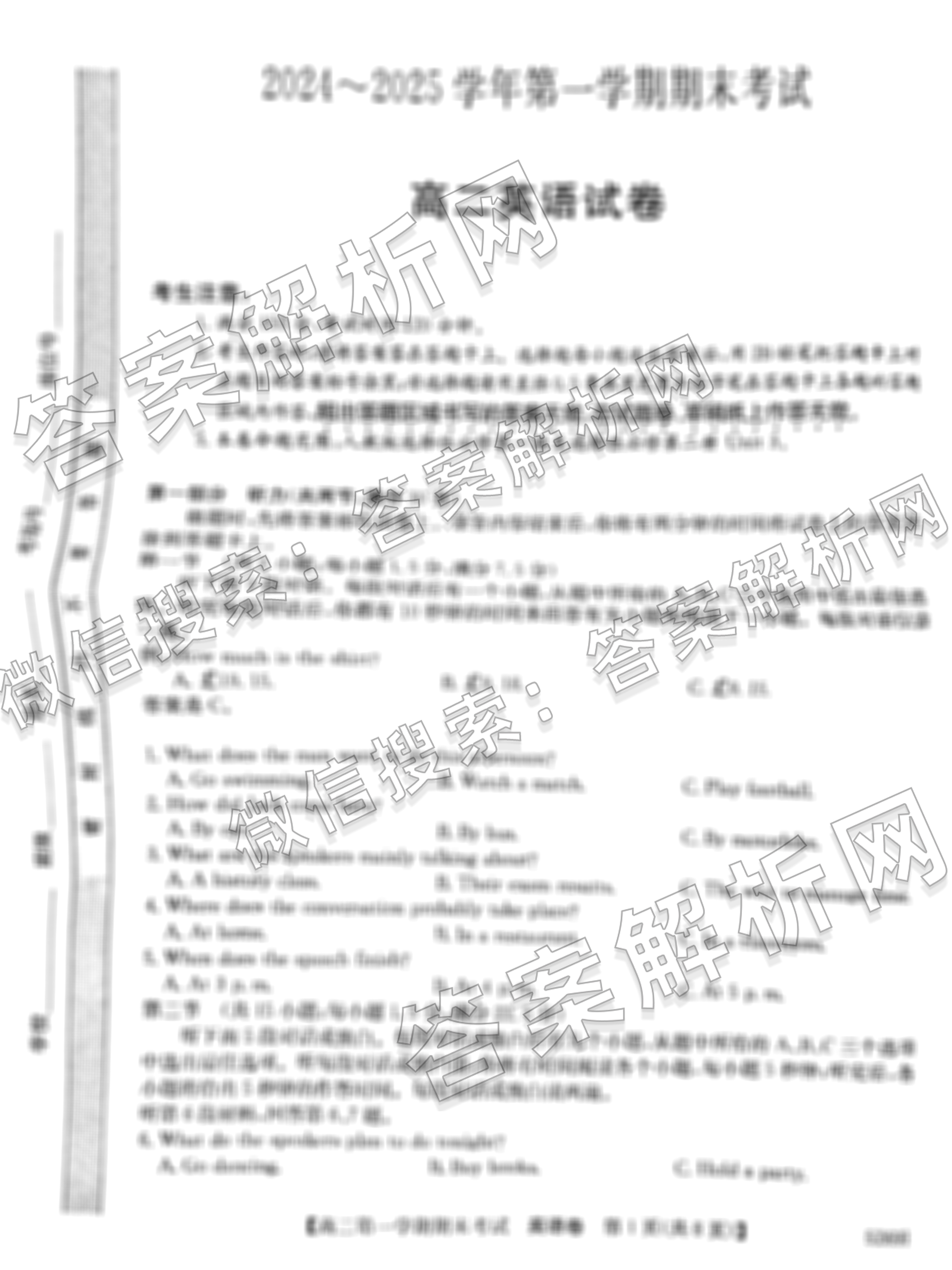 - [高三](衡中同卷)2023-2024学年度上学期年级期末考试 英语((衡中同卷))答案