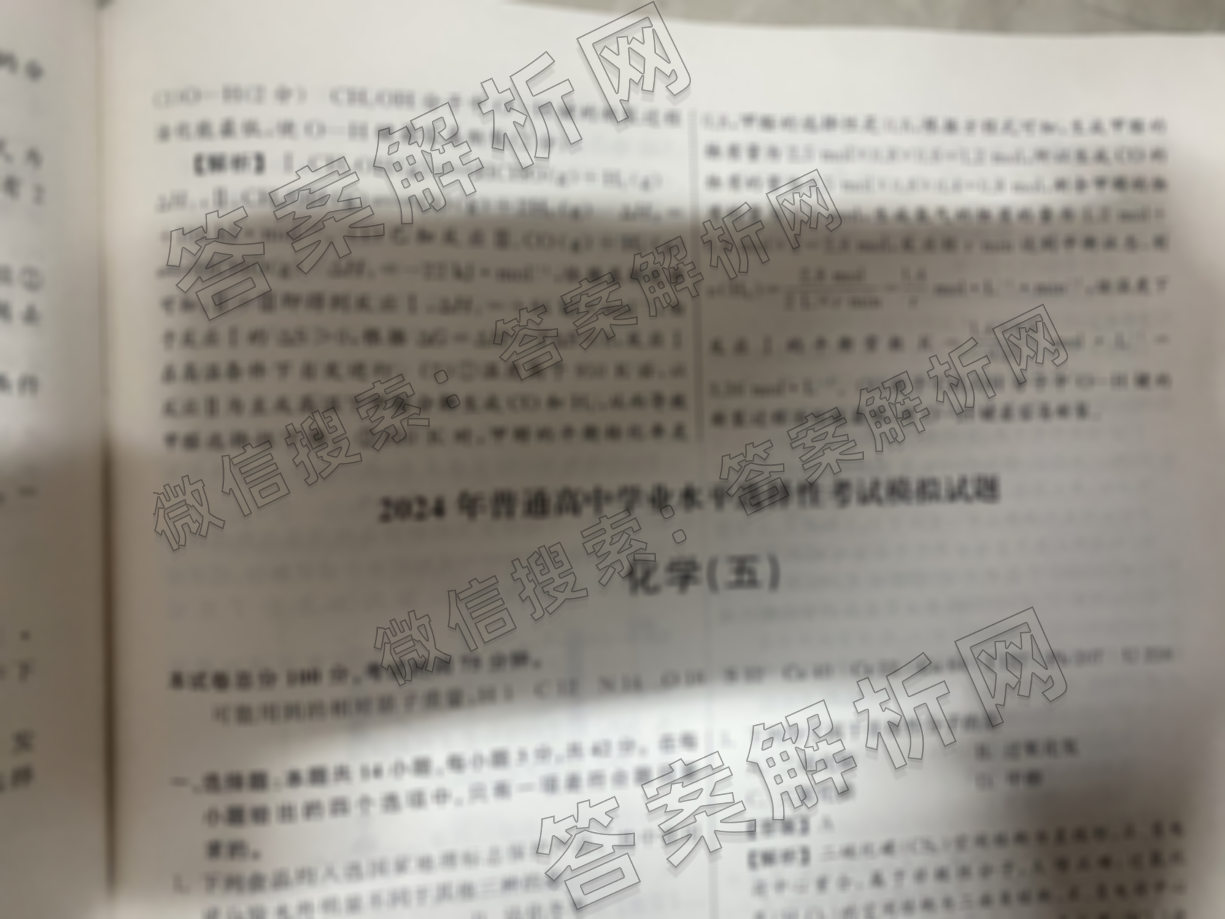 - [高三](衡中同卷)·调研卷 2024年普通高中学业水平选择性考试模拟试题(四)4化学(新教材版L)答案