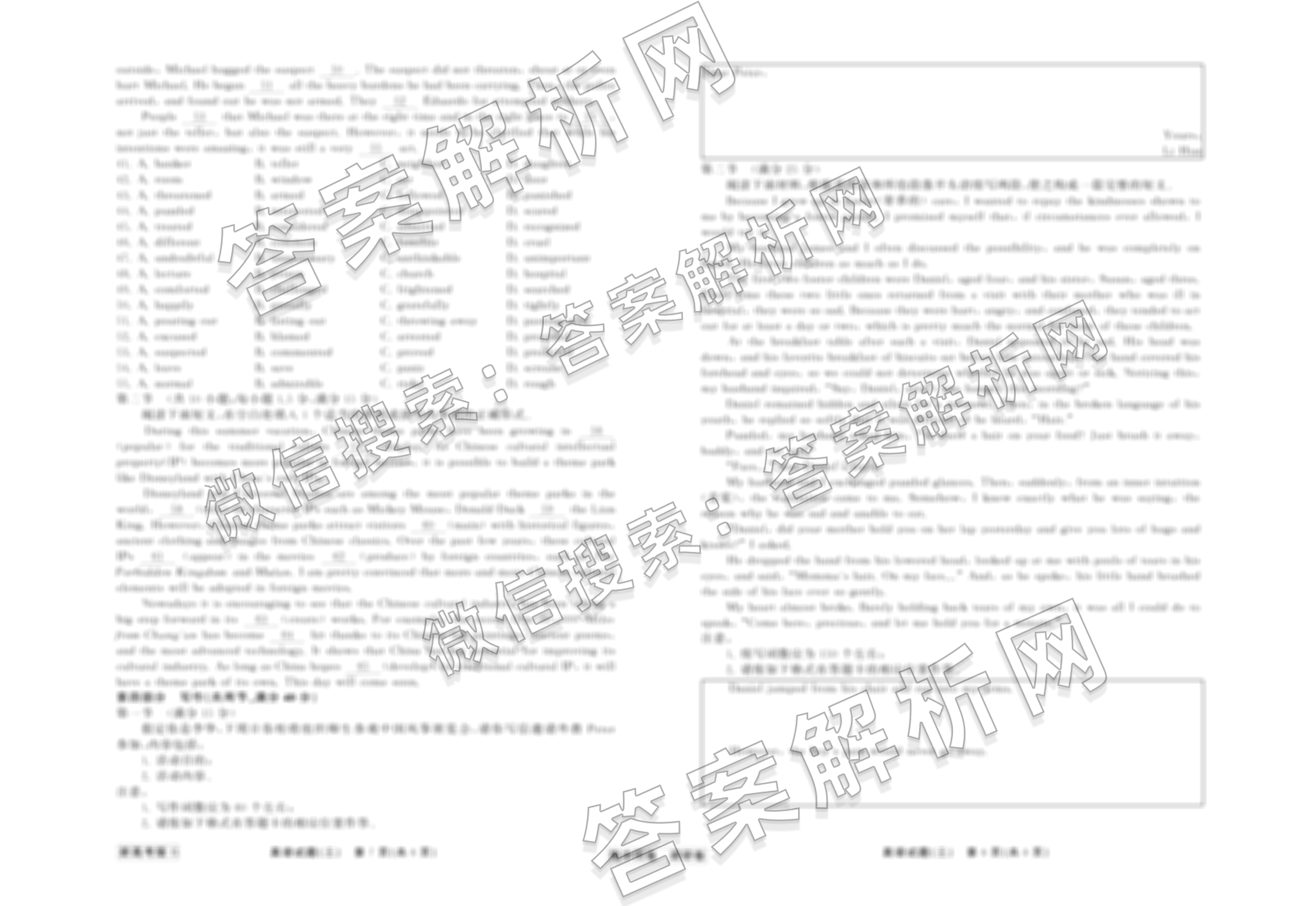 - (高三)[衡中同卷]·调研卷 2024年普通高等学校招生全国统一考试模拟试题(三)3英语(全国卷)答案