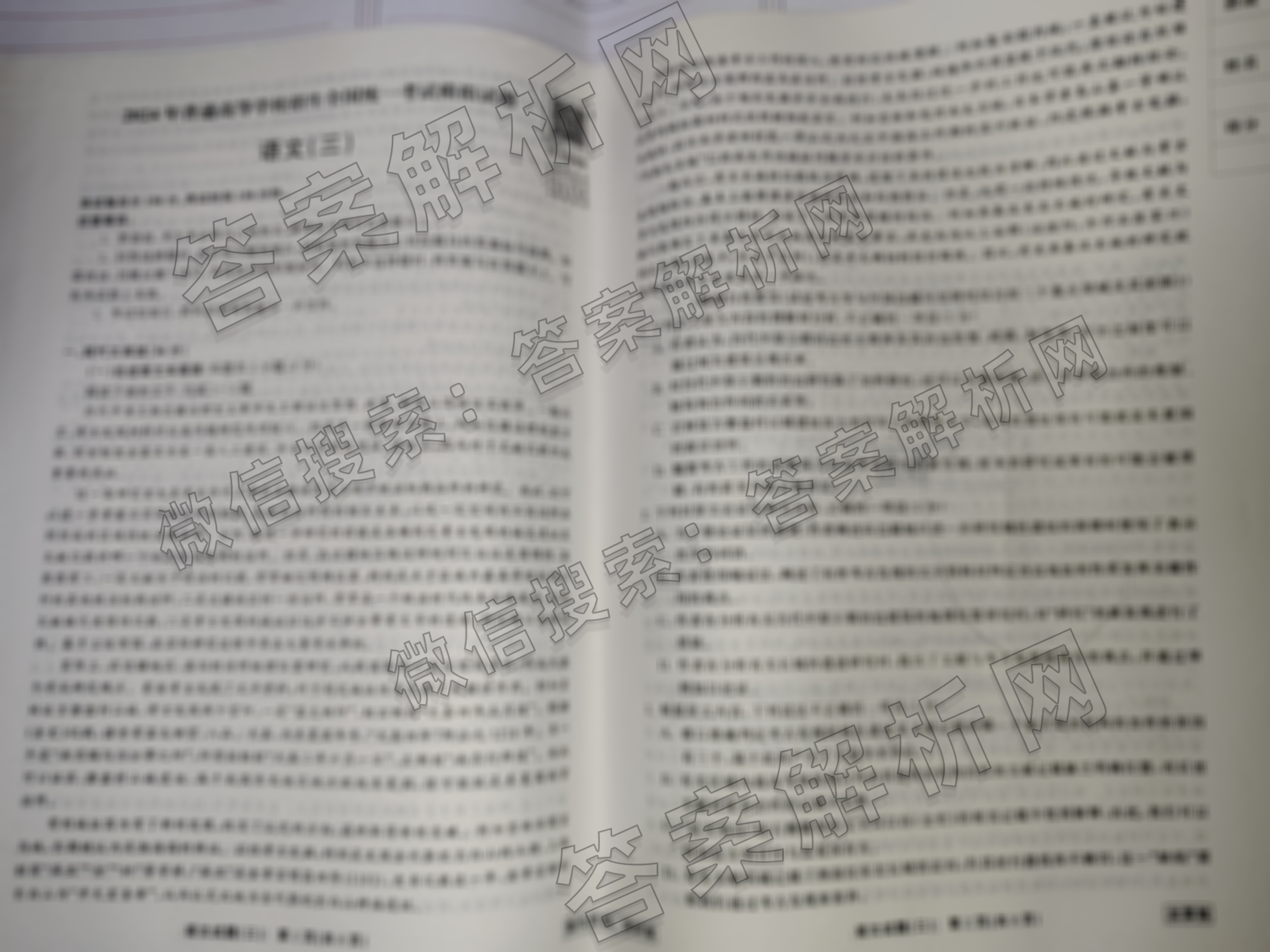- (高三)(衡中同卷)·调研卷 2024年普通高等学校招生全国统一考试模拟试题(三)3语文(全国卷)试题