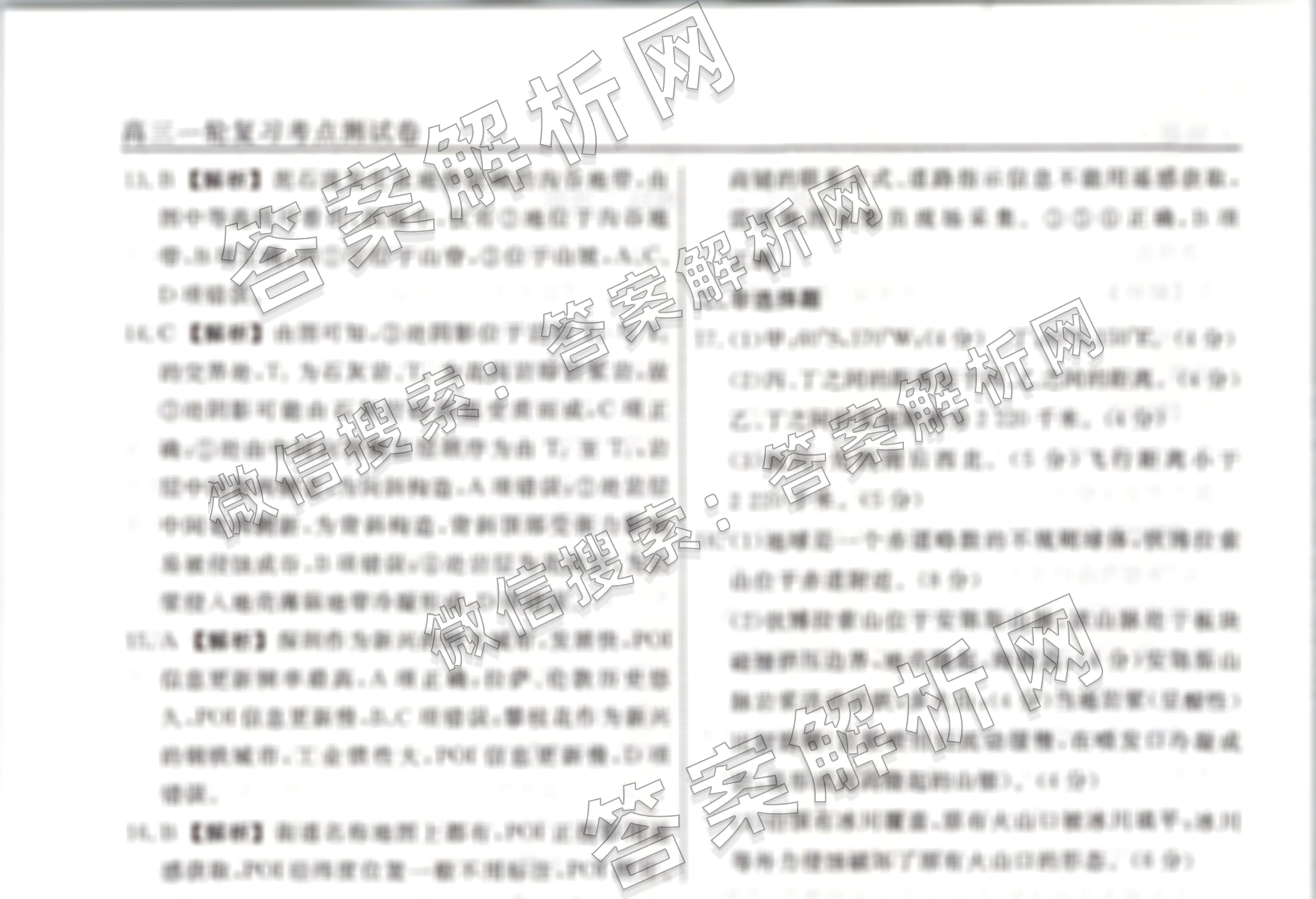 衡水名师卷2023-2024学年度高三一轮复习考点测试卷地理(40分钟空心菱形)(一)1答案
