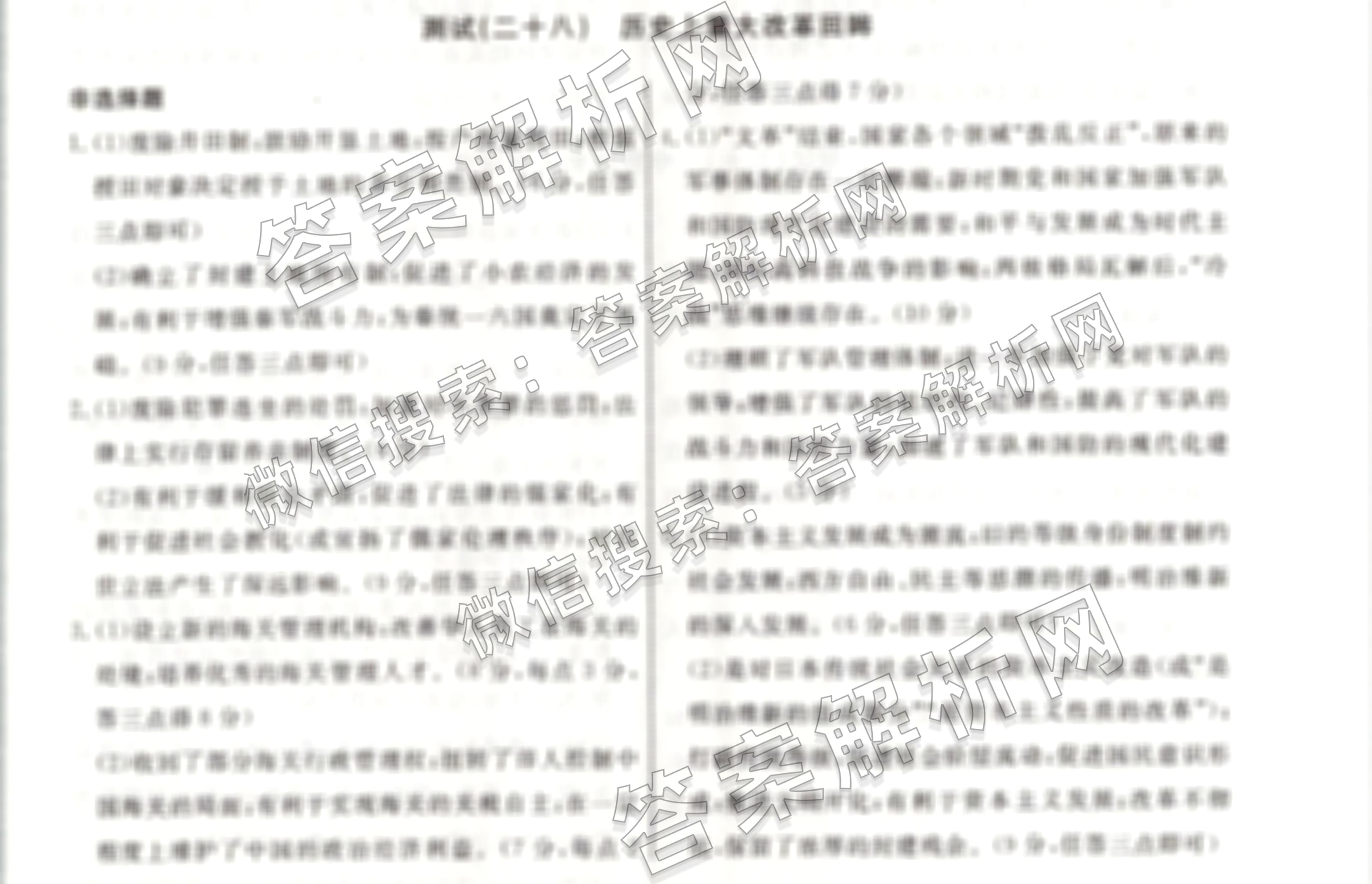 衡水名师卷2023-2024学年度高三一轮复习考点测试卷历史(40分钟同心圆)(二十八)28答案