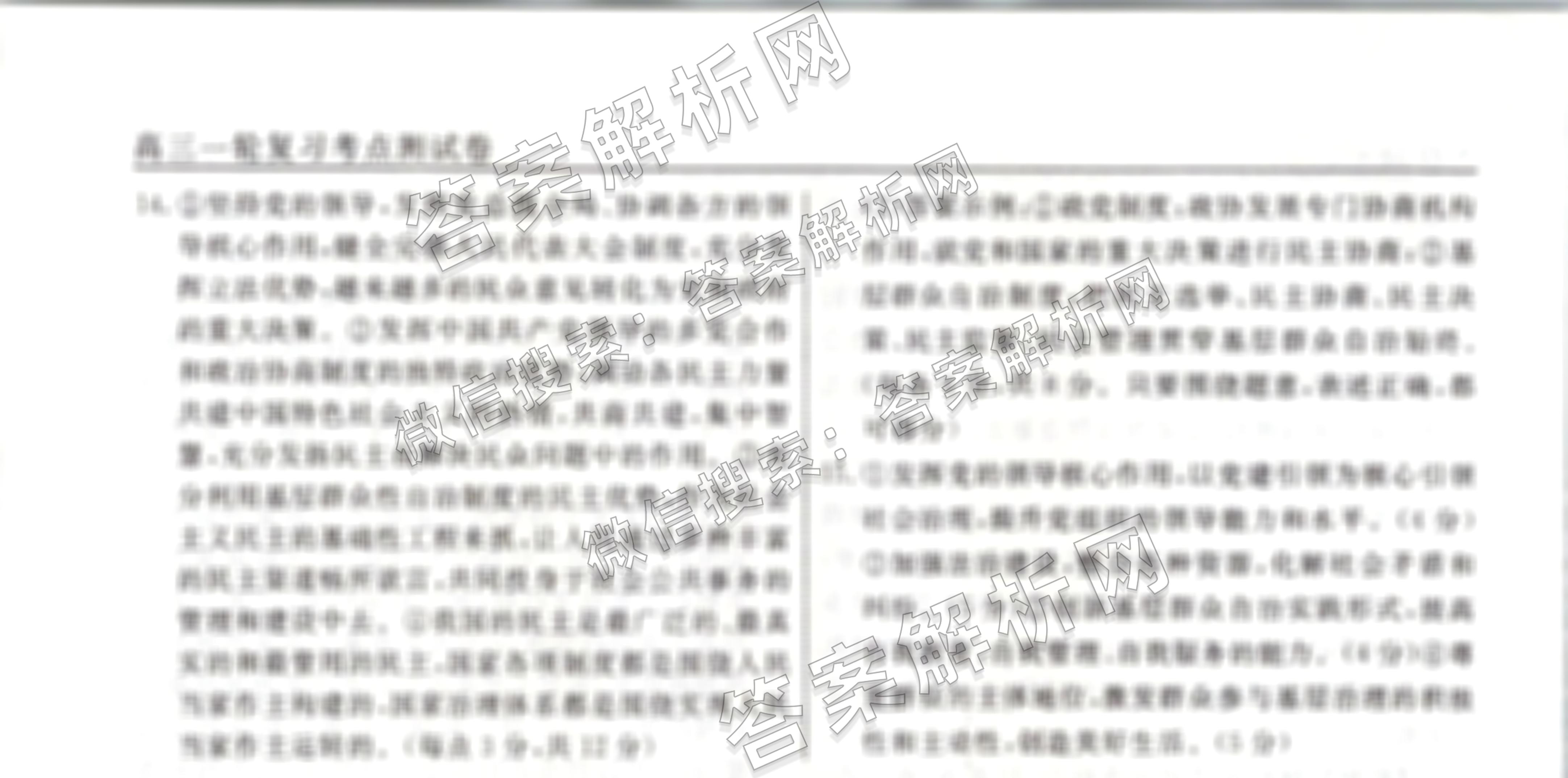 衡水名师卷2023-2024学年度高三一轮复习考点测试卷政治(40分钟实心菱形)(十二)12答案