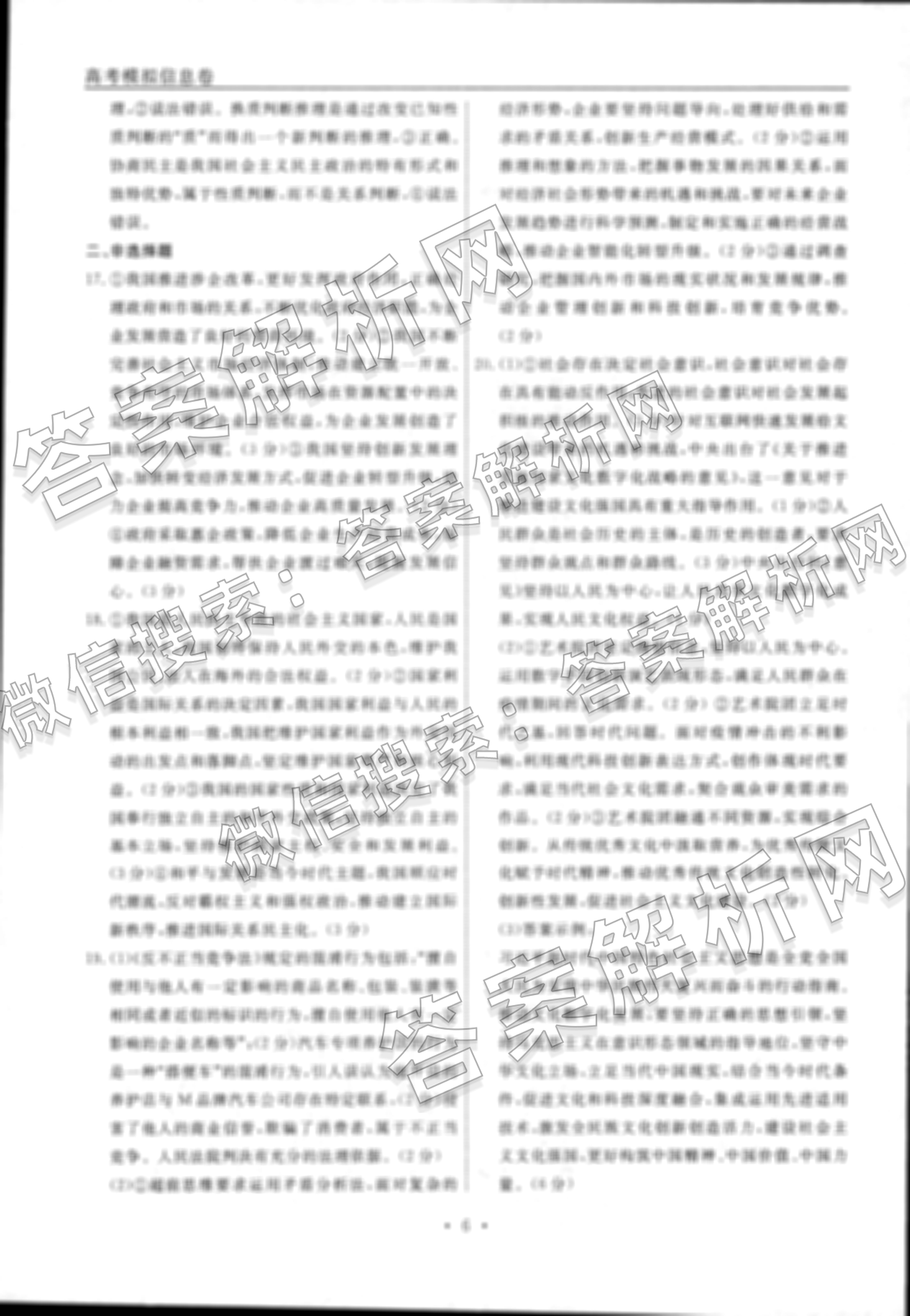 衡水名师卷2022-2023高考模拟信息卷 政治(湖南)(三)3答案