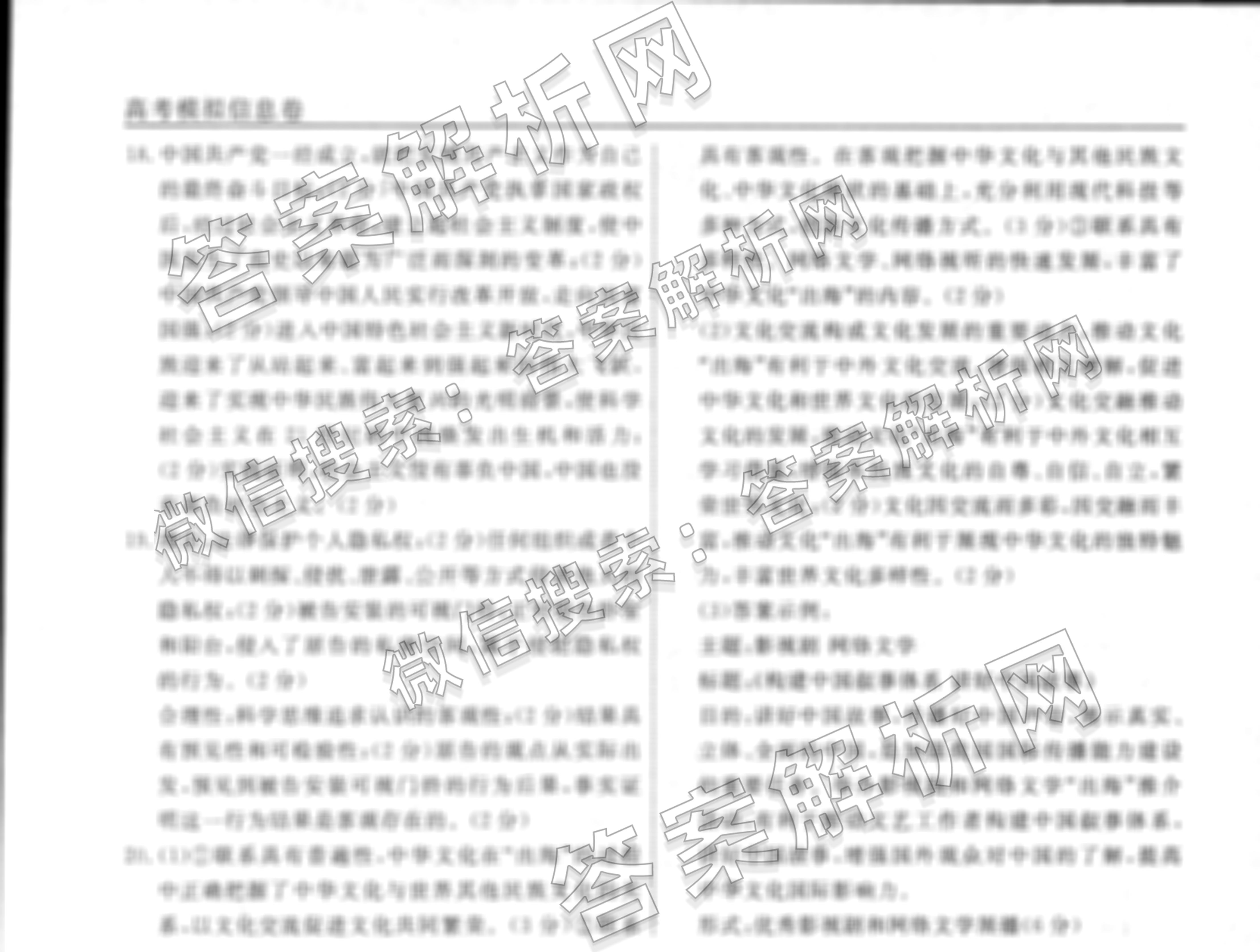 衡水名师卷2022-2023高考模拟信息卷 政治(湖南)(一)1答案
