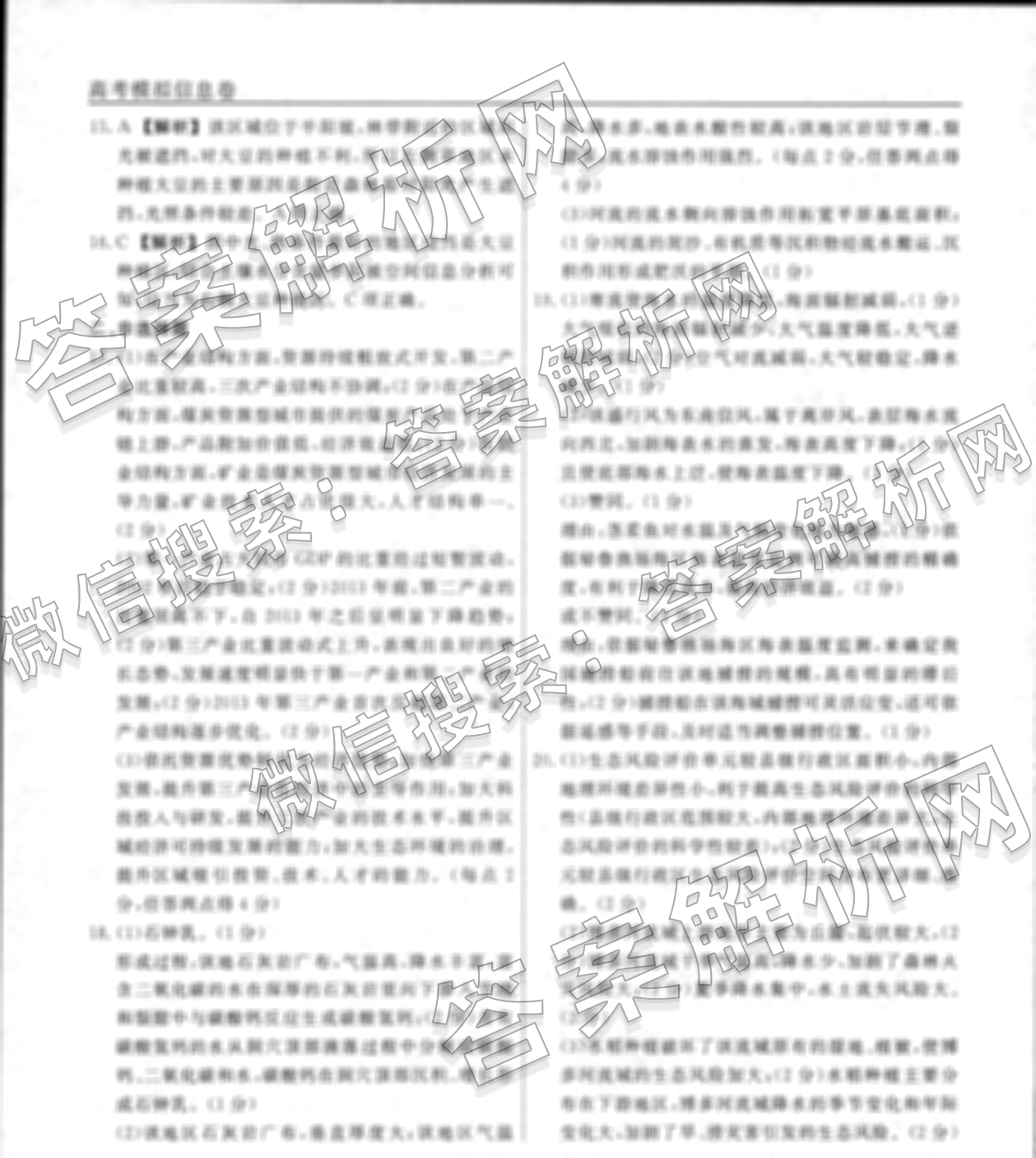 衡水名师卷2022-2023高考模拟信息卷 地理(湖南)(四)4答案
