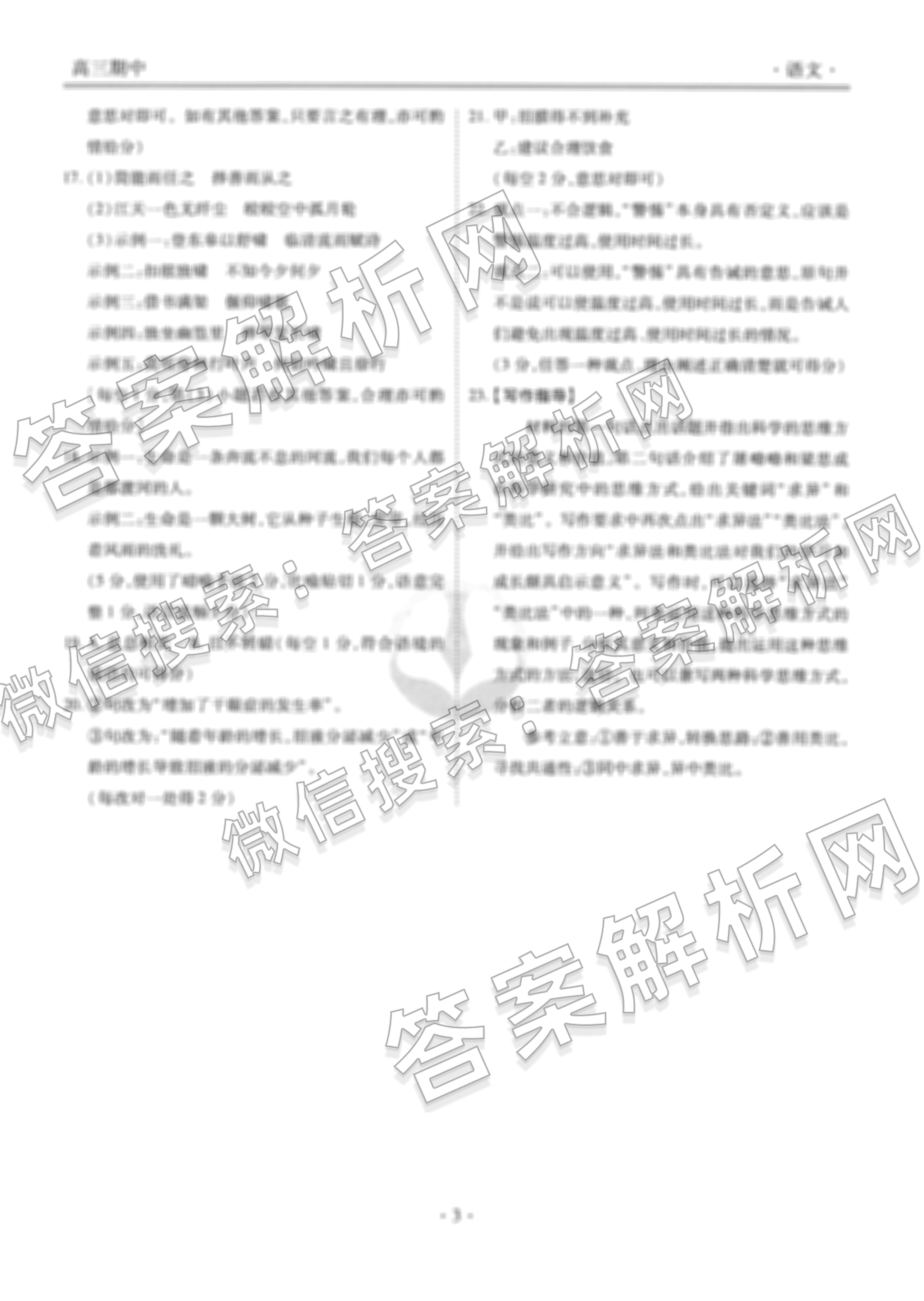 - 2024~2025衡水金卷先享题·月考卷 学年度上学期[高三]年级期中考试语文答案