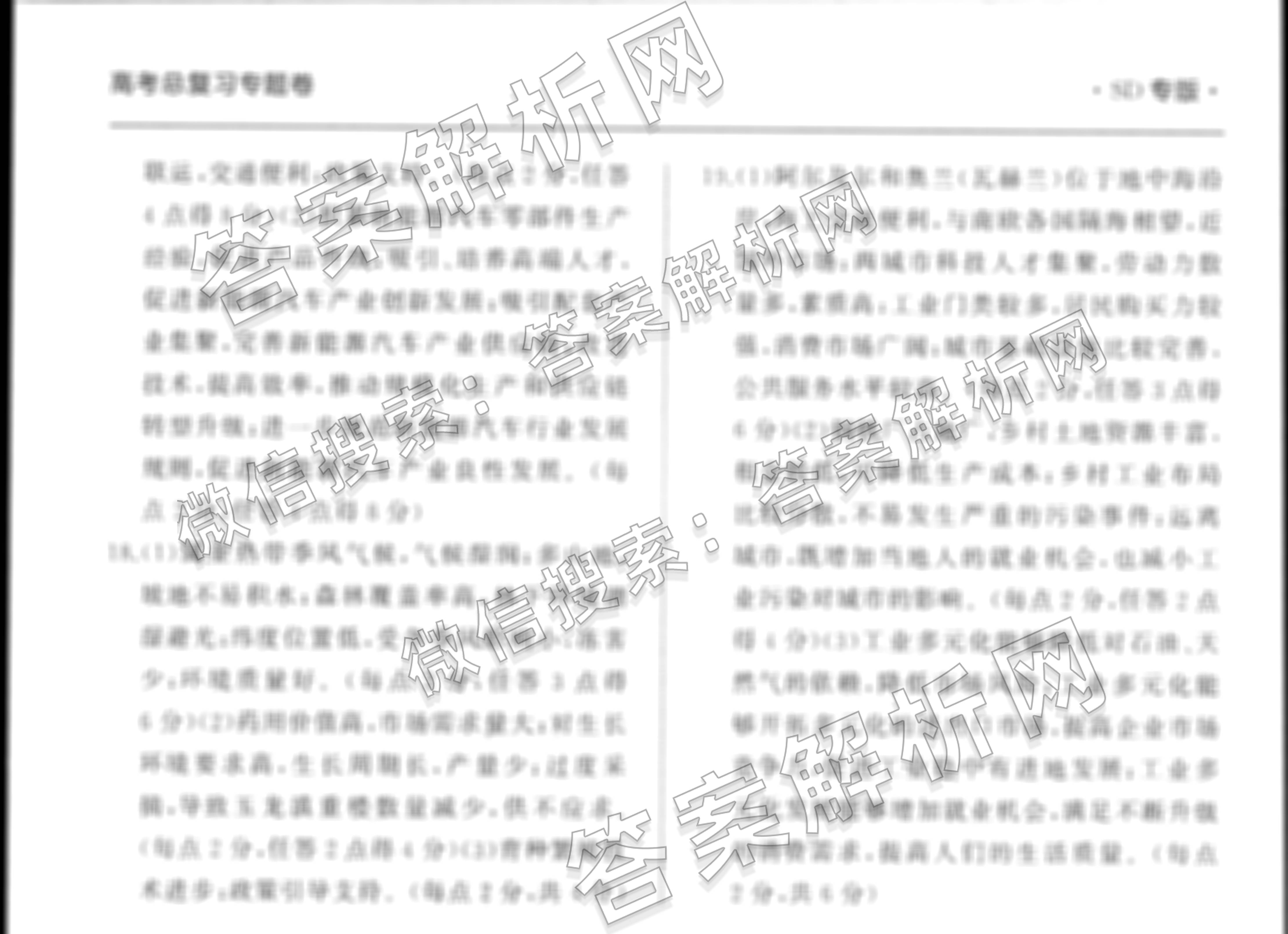 衡中同卷2024-2025学年度高考总复习专题卷(十)10地理(SD专版)答案