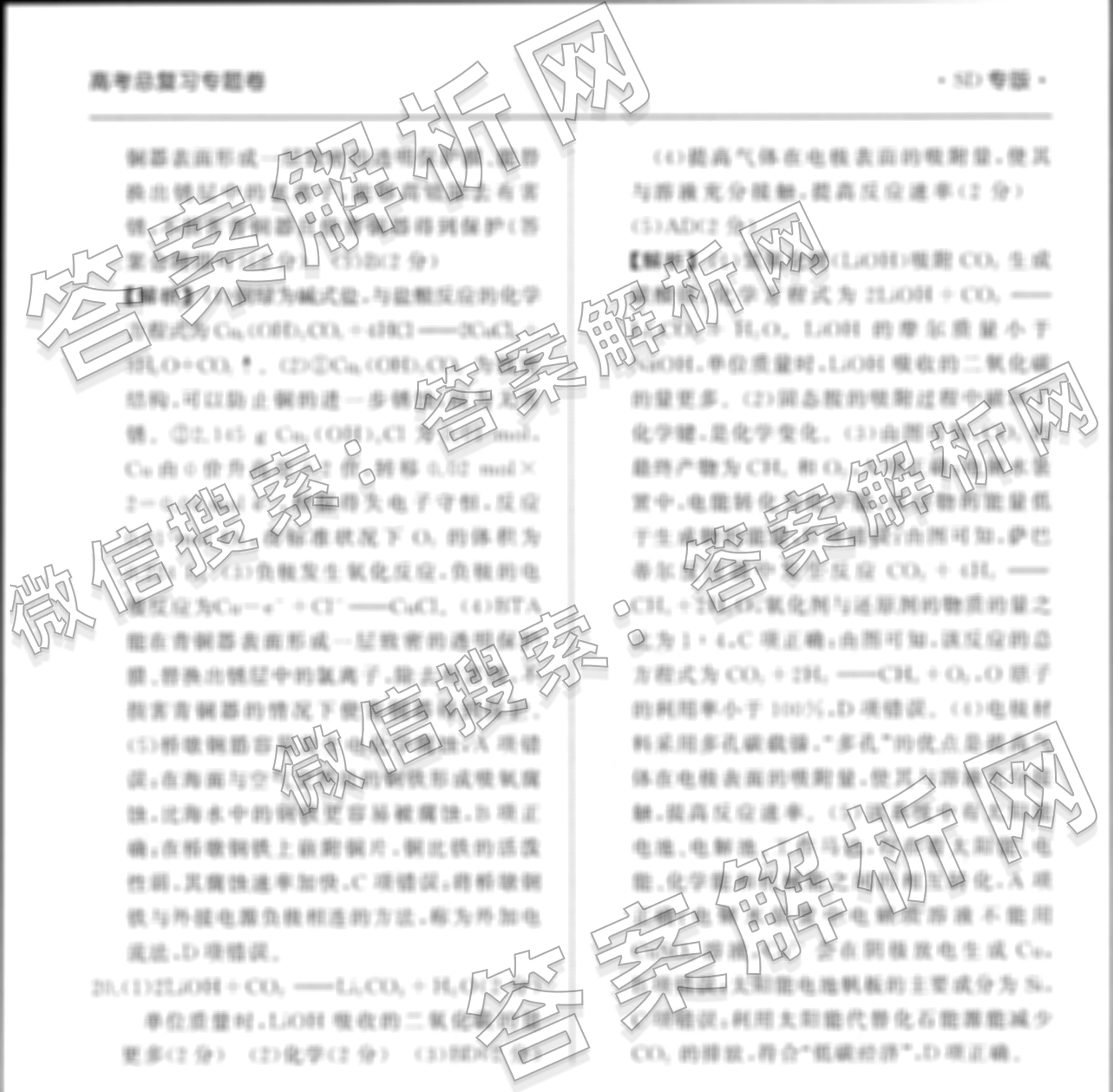 衡中同卷2024-2025学年度高考总复习专题卷(一)1化学(SD专版)答案