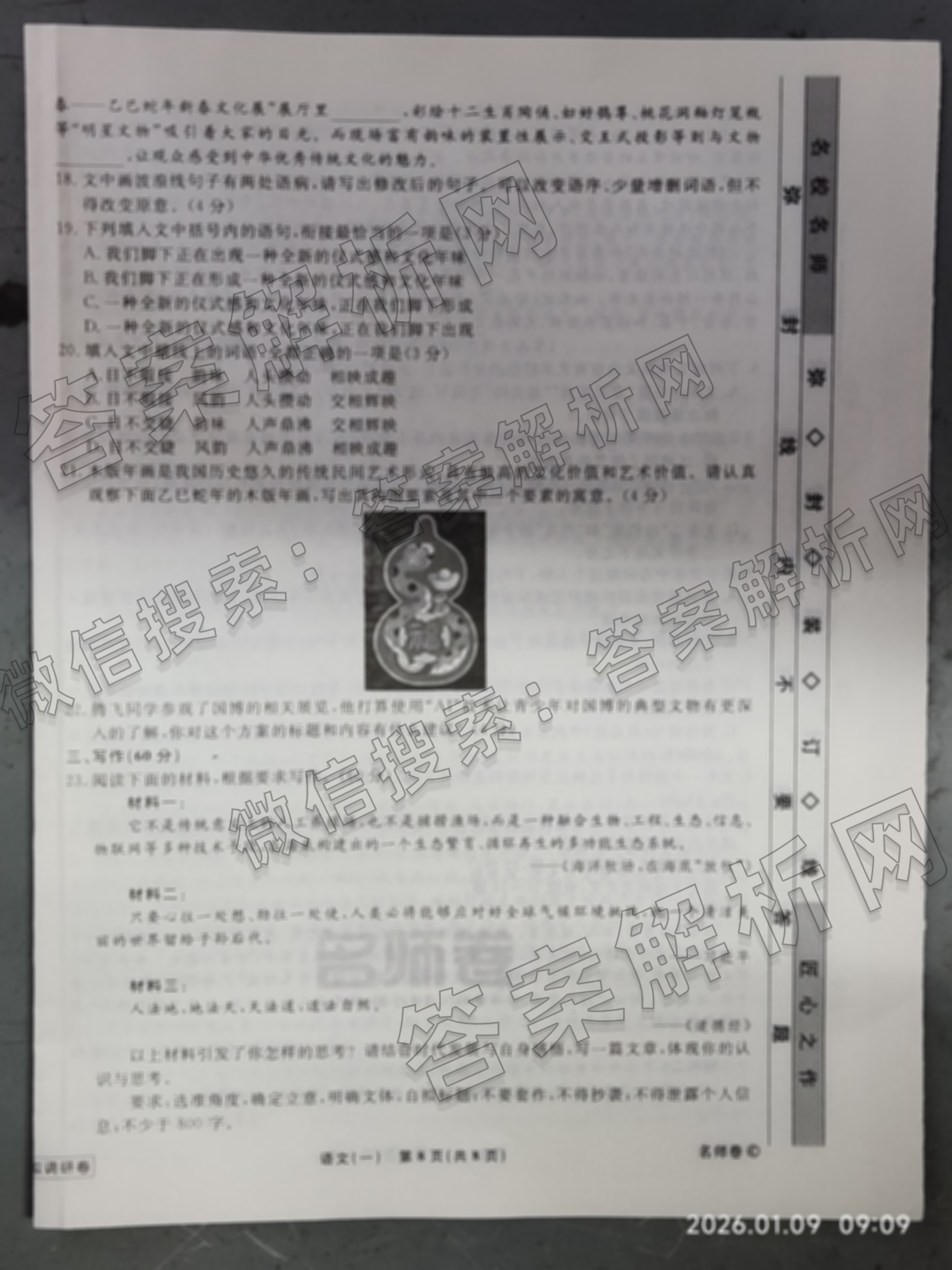 - [衡水名师卷]·高考模拟调研卷 2026年普通高等学校招生全国统一考试模拟试题(一)1语文(空心菱形)答案