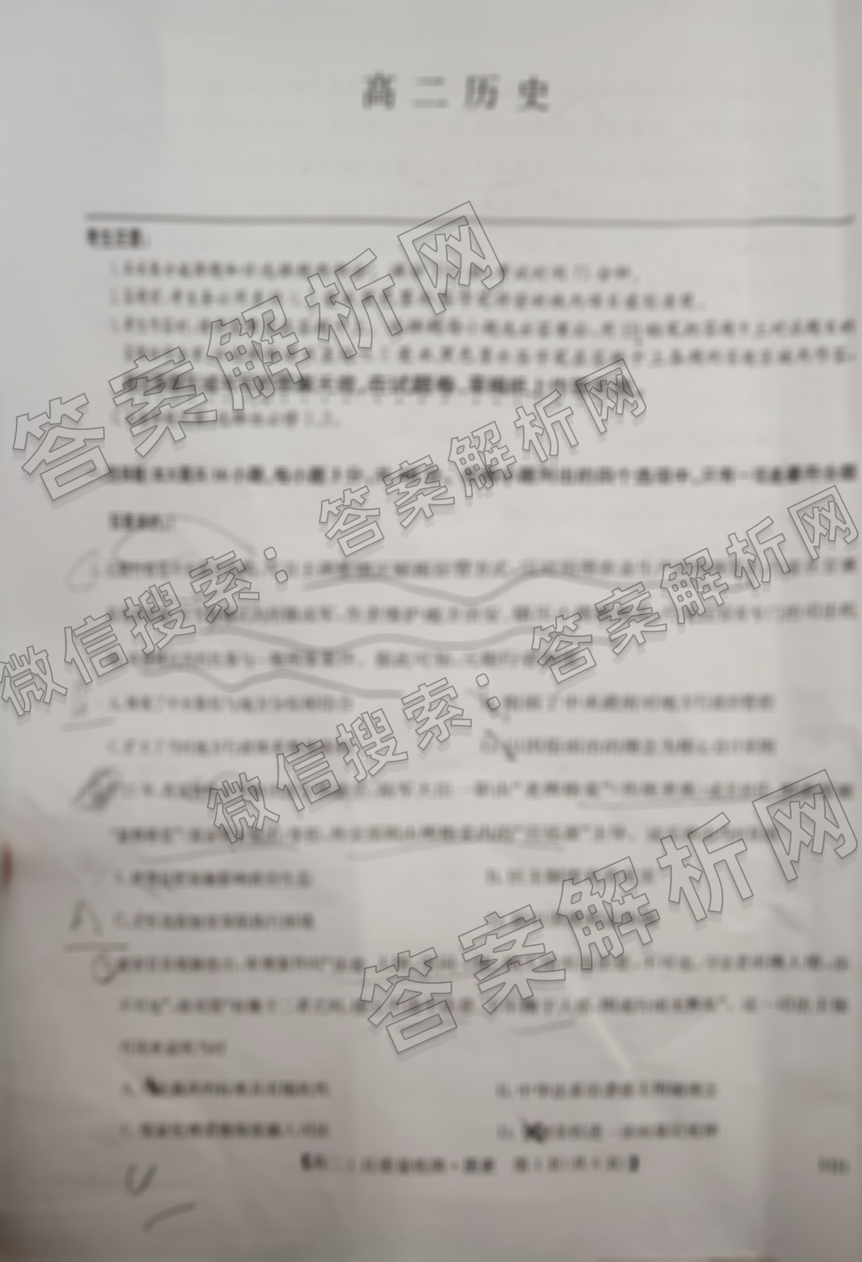- [九师联盟]2025-2026学年[高二]1月质量检测(1.11)历史(HB)答案