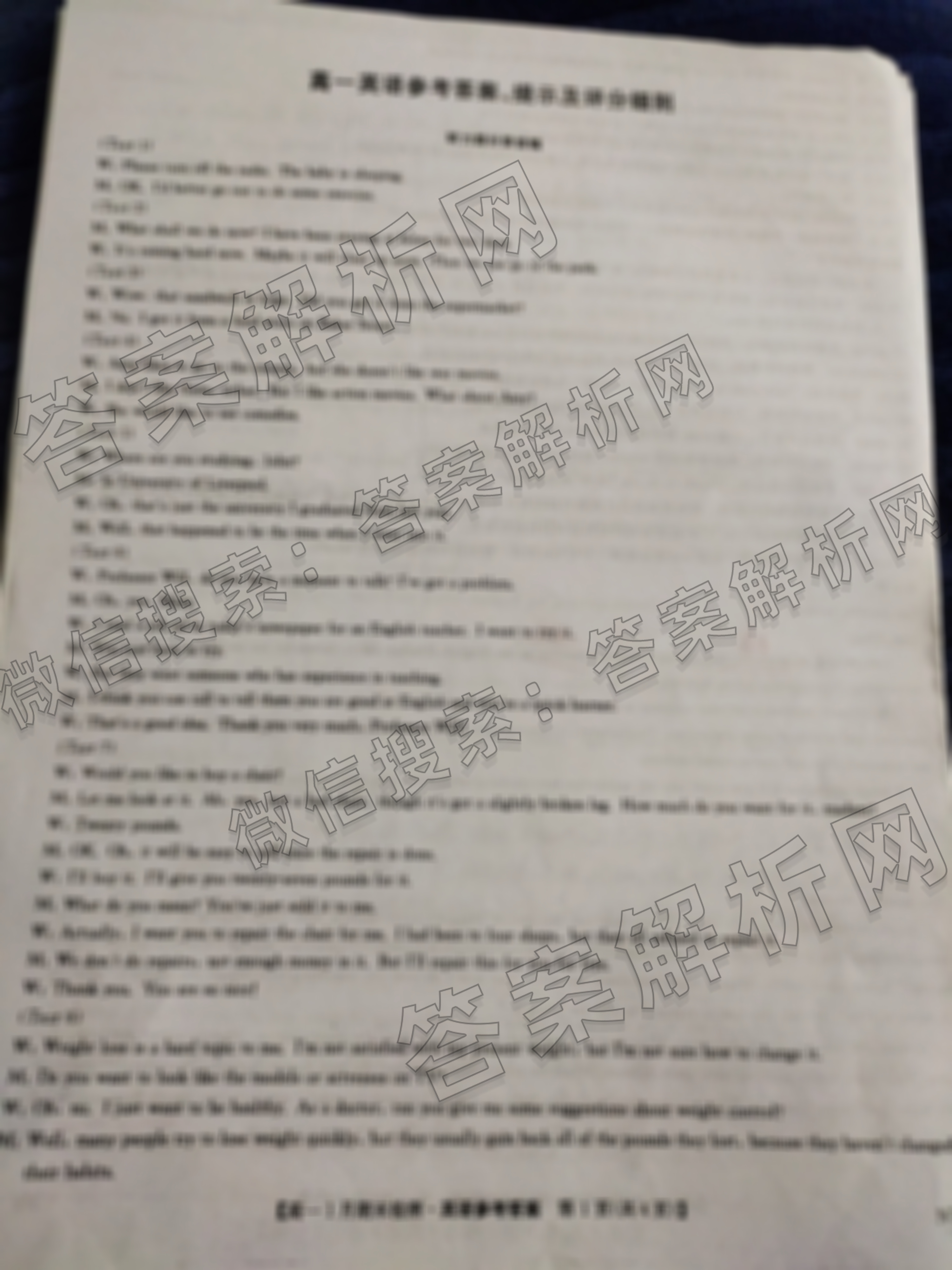 - (高一)(九师联盟)2025-2026学年期末检测(1.11)英语(NY)答案