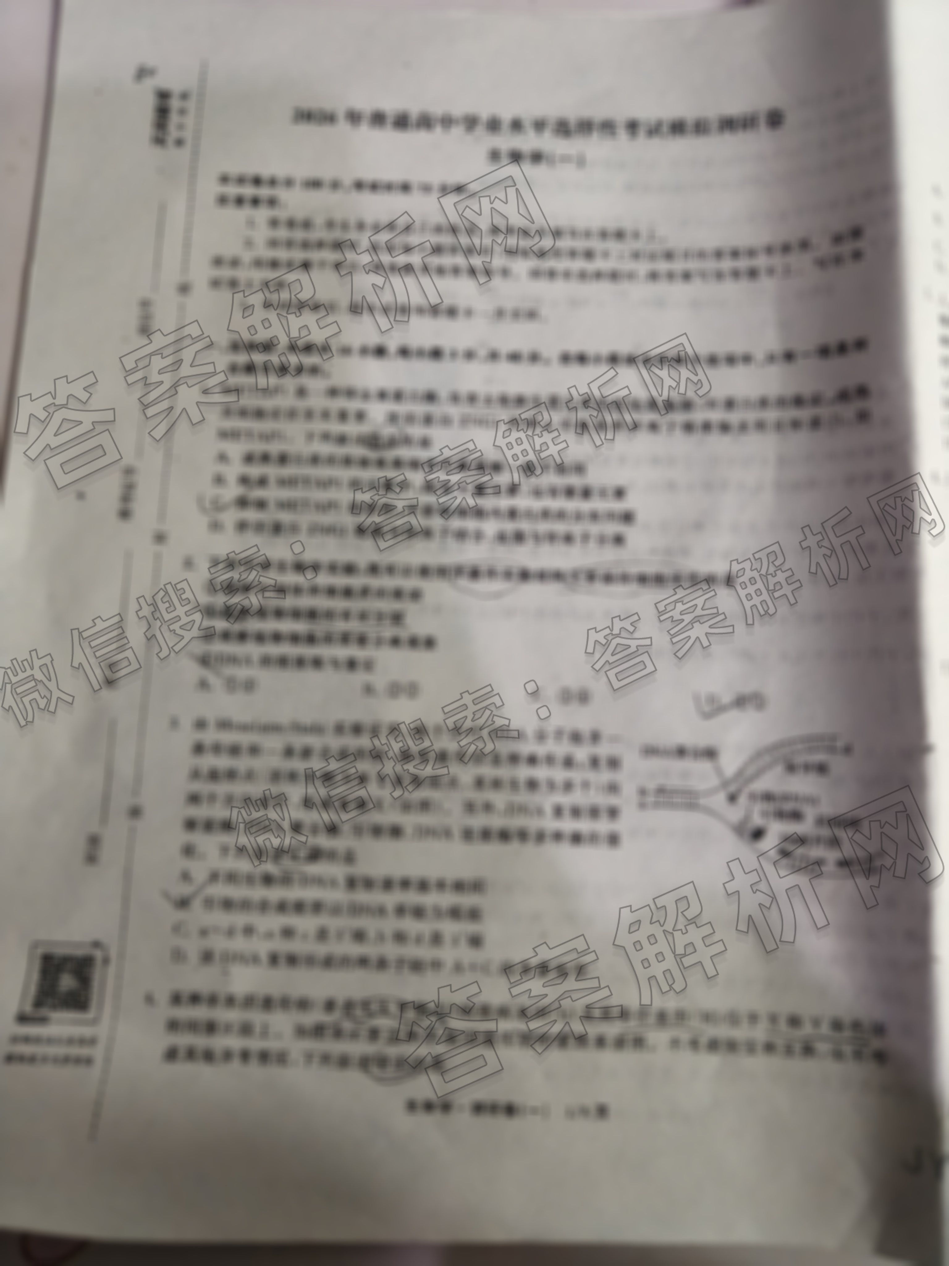 - 高三天舟高考(衡中同卷)2026年普通高中学业水平选择性考试模拟调研卷(一)1生物(WY)试题