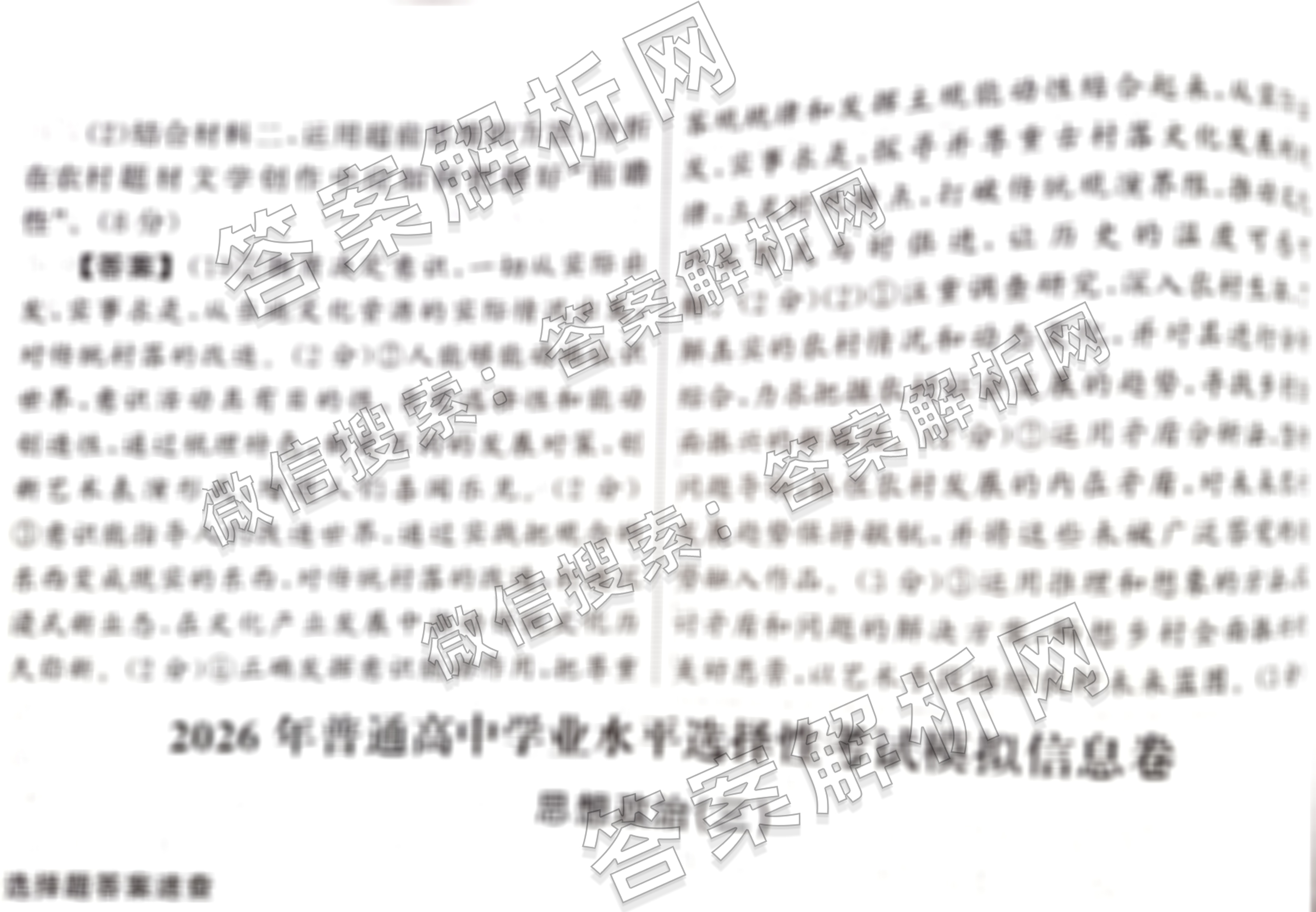 - [高三]天舟高考衡中同卷2026年普通高中学业水平选择性考试模拟调研卷(二)2政治(WY)答案